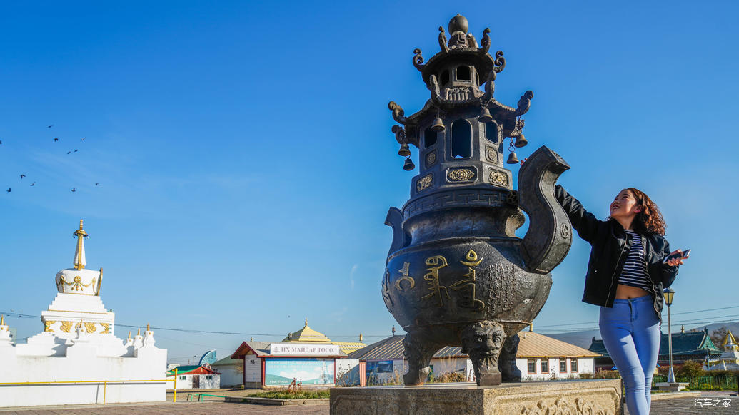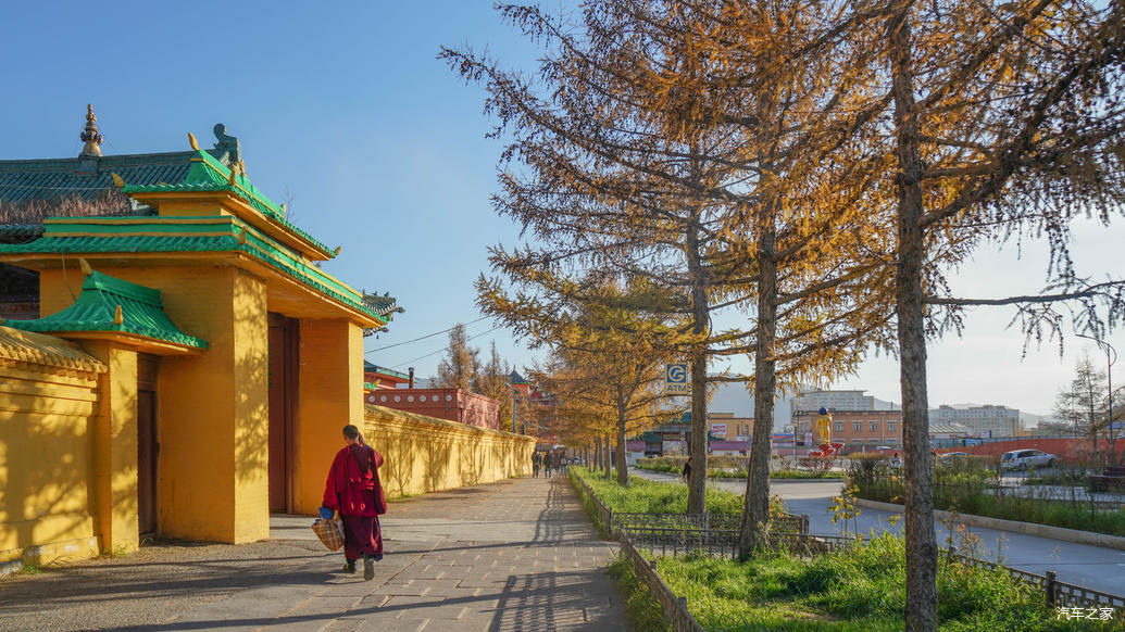其实蒙古是个很有意思的国家,在大家印象中,蒙古天然的和贫穷和神秘联系在了一起,因为鲜少有人踏足这片广袤的土地。其实蒙古有丰富的矿场资源,要真说穷,我却在路上看到了劳斯莱斯,也许也是个贫富差距大的国家。这里说一个小故事,蒙古鼓励生养,然而,人口还是少,并不是因为他们没有生,而是因为即使生了,也可能因为娃娃自己外出而被狼给叼走了。因为地广人稀,这里的孩子很小就将他们放养在外,游牧地区的村落里,六七岁的娃娃就可以带着狗去放羊,娃娃可能还没有狗高。而乌兰巴托的首都,确实是是全国现代化最高的地方了。前一晚深夜抵达乌兰巴托,第二天下午,依次逛了甘丹寺、瞿山河苏赫巴托尔广场。第一站就是甘丹寺了,这里是蒙古最大的藏传佛教寺庙,主殿里的大佛可是蒙古国的国宝哦。