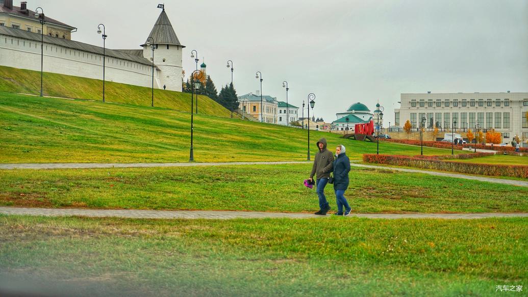 克里姆林宫前是一块硕大的草坪,即使是阴雨天气,也能看到挽手在外散步的小夫妻。