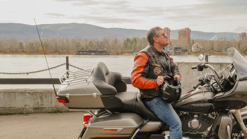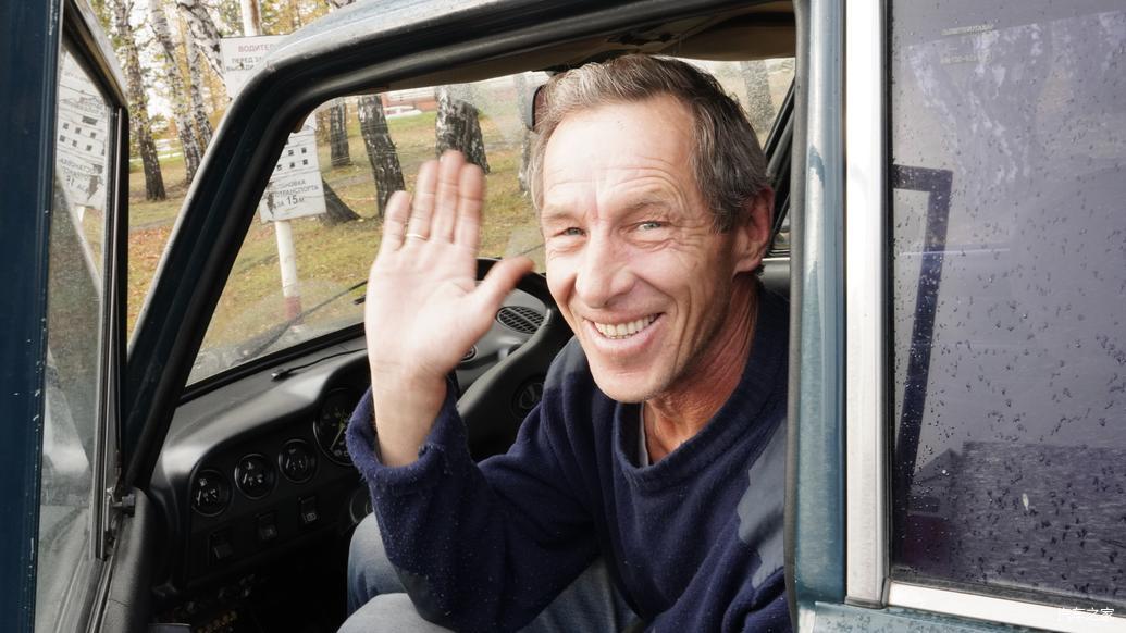 在叶尼塞河边,没见到长腿妹子,却活捉了一位骑机车的大叔。当我们将相机对准他时,他倒是很配合,甚至将帽子摘下来凹造型。脸上却永远是一副酷酷的样子。