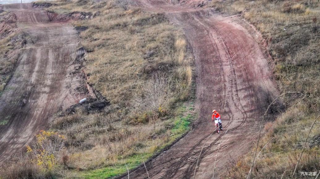 在山的远处,有一位摩托车手开着山地摩托,加速、上坡、腾空……马达的声音响彻天际,路面上碾出一道道痕迹。众人的目光都被吸引过去,这里成了他的表演场。