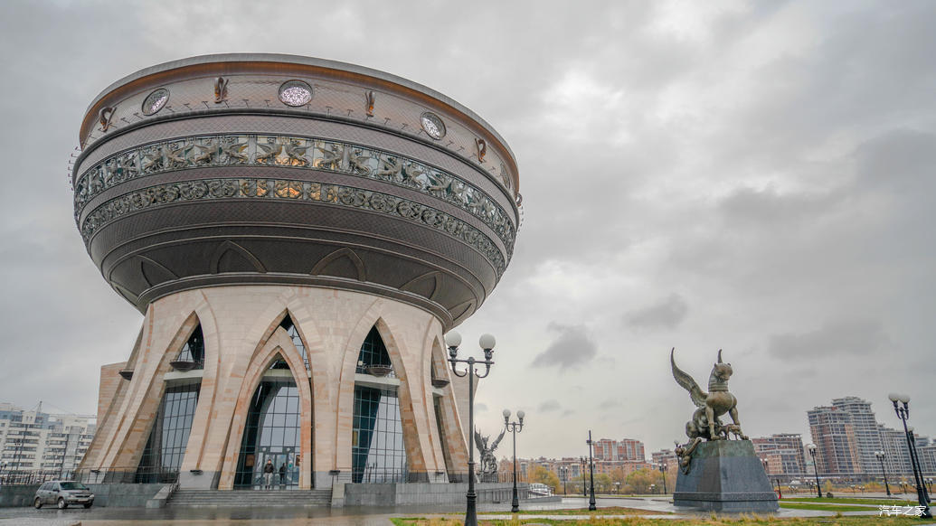 要说最有意思的新建筑,还是要属这个“喀山之碗”了。不过你一定猜不到它是用来干嘛的,体育馆?大会堂?戏剧院?No,No,No!这里是喀山的婚姻登记处!在鞑靼语中,喀山的意思就是“大锅”,两边的神兽则有保护新婚夫妇免受磨难的寓意。